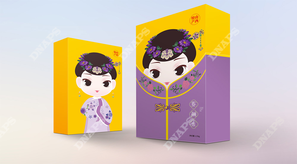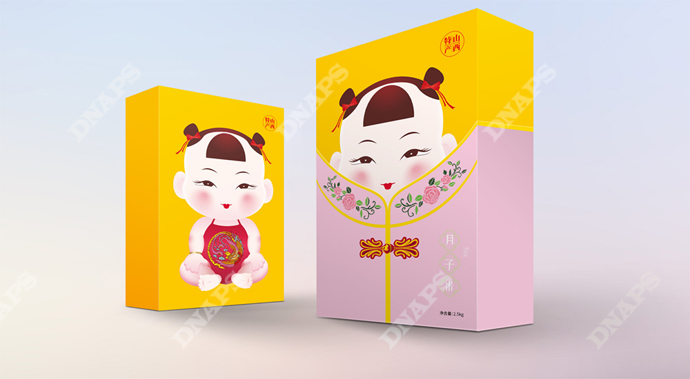 區(qū)別于傳統(tǒng)小米包裝,根據(jù)小米的不同搭配將小米分為月子米,成長(zhǎng)米,養(yǎng)顏米3類(lèi),視覺(jué)上分別以成對(duì)的嬰兒、小孩、年輕女性/媽媽為主要形象元素,采用現(xiàn)代插畫(huà)的形式創(chuàng)造三組萌趣生動(dòng)的形象,畫(huà)面生動(dòng)富有張力,配色清醒典雅,增強(qiáng)產(chǎn)品親和力。包裝盒外加設(shè)計(jì)有古典服飾圖形的封套,整體形式新穎富有層次感,拆掉封套將呈現(xiàn)另一幅畫(huà)面,開(kāi)盒有趣味,讓整體形成記憶點(diǎn)。